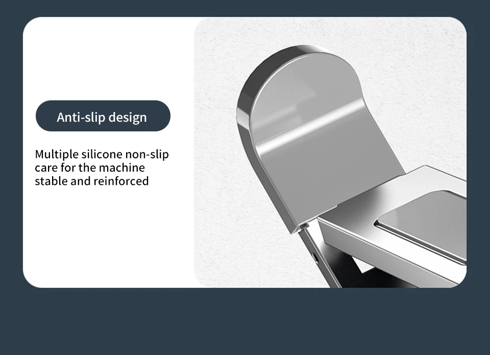 This portable bracket is made of high quality 4mm aluminum alloy. It has a stronger load capacity than other stands, a more stable center of gravity and a more refined texture. The laptop holder can stably support 11 pounds things. For the non-slip silicone pad, it can protect your devices from scratching and sliding.